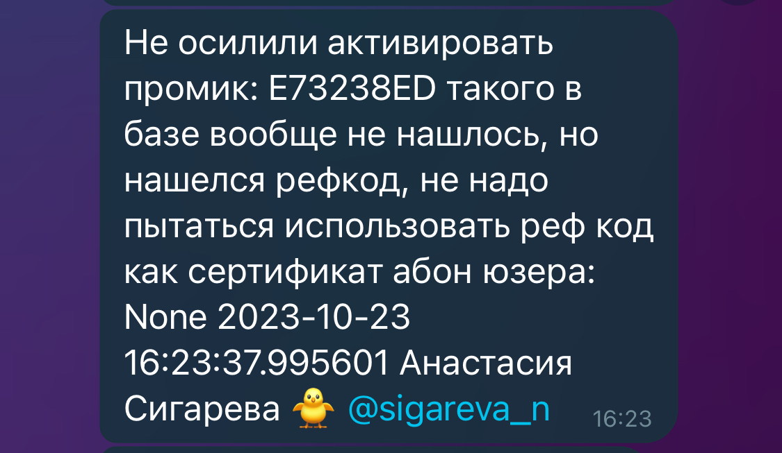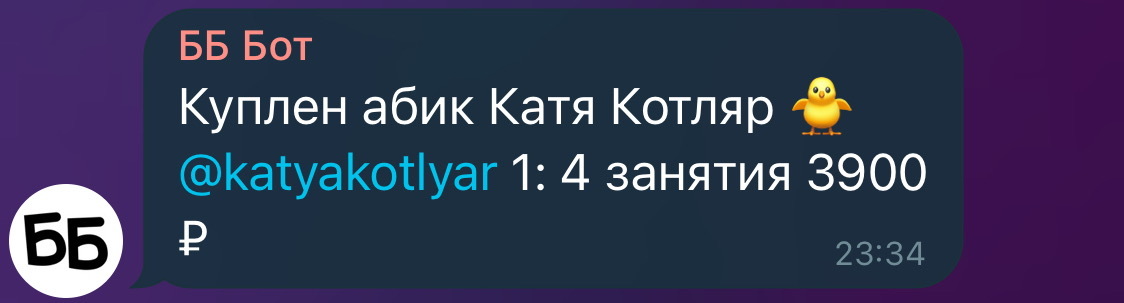 Возможность добавить абонементы и сертификаты. Гибкая настройка. Если это сертификат - бот вышлет клиенту картинку (твой шаблон) с кодом.